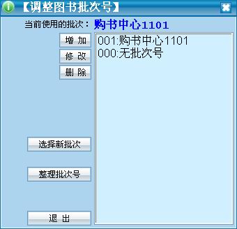 对于采用图书批次号的分馆,在每一批图书编目前,首先设置此批图书的批次号,方便以后对同批次图书的管理。批次号的设置,可以采用“购书单位+日期”的方式,以便方便记忆。比如,从购书中心购买一批图书,可以设置“购书中心1101”,不是从购书中心购买的2011年第1批图书。